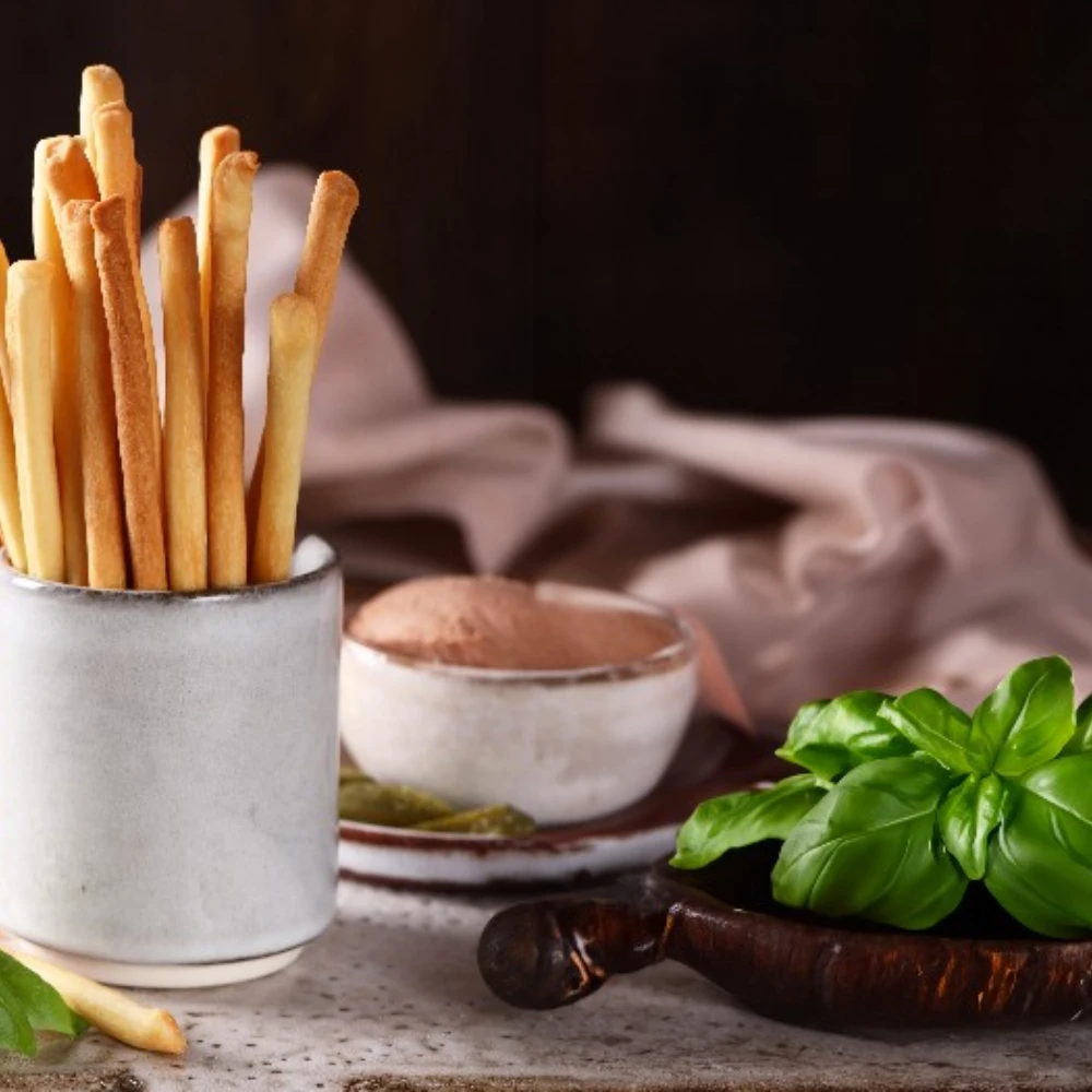 Colocar las tiras de masa en una placa de horno previamente aceitada. Para más sabor pincelar las tiras con aceite de girasol al cual se le agregó previamente una cucharitas de pimentón dulce, una cucharita de orégano y una cucharita de adobo. Cocinar en el horno aproximadamente 15 a 20 minutos o hasta que los palitos estén dorados.Para un dorado uniforme a mitad de tiempo de cocción deberán darse vuelta.